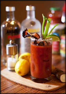 Coge su vaso y cubrir el borde con jugo de limón, luego dan un remolino en su tocino rallado, este se ve impresionante, como un libro gourmet elegante e impresiona a los amigos sin fin. A continuación, toss en el hielo, vierta el vodka, exprimir el limón, splash en su salsa picante, sal y pimienta, vierta en tu Mary Mix hasta aproximadamente 3/4 completo, darlo todo un buen revuelo.