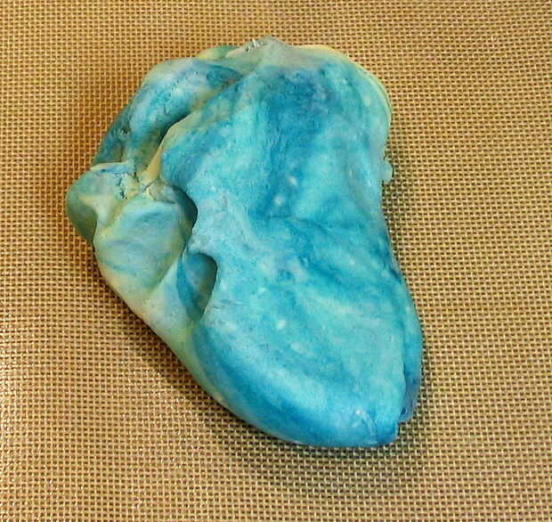Die Farbe wird en den Teig eingearbeitet. BEI Bedarf kann noch mehr Farbe hinzugefügt werden.