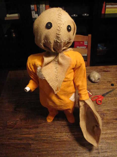 nuestra hijita de cinco años quería ser Jack Skellington para Halloween. Hecho el traje y estaba planeando hacer una cabeza de papel maché, pero luego sucedió sobre una gran cabeza hecha de antemano. Entonces mi hija dijo que quería un perro cero par