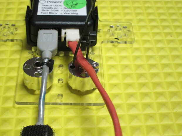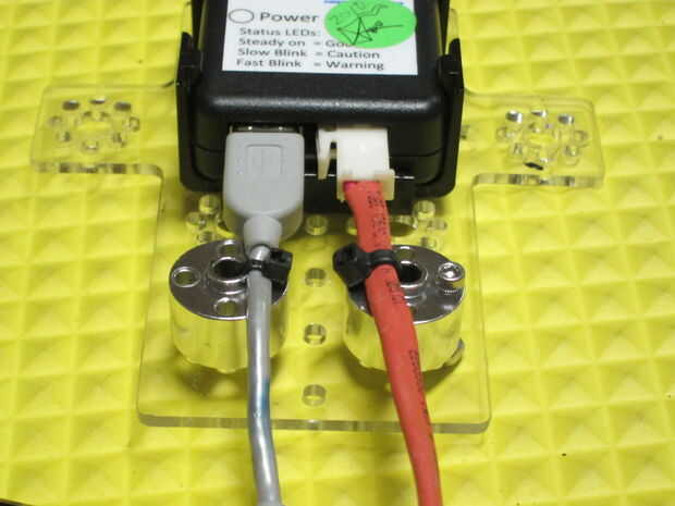 Ahora agregamos la clave de todo este sistema. Los espaciadores del eje de engranaje sostienen los cables de lugar e impiden el movimiento en todas las articulaciones sensibles. Los espaciadores del eje de engranaje ir en los patrones de agujero inferior del soporte de montaje de Samantha y son zip atada con los hilos. También puede atornillar los cubos y zip empate a través de otros orificios. He hecho uno cada manera. Hemos encontrado que zip justo fijar el espaciador está bien.
