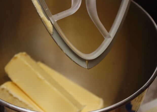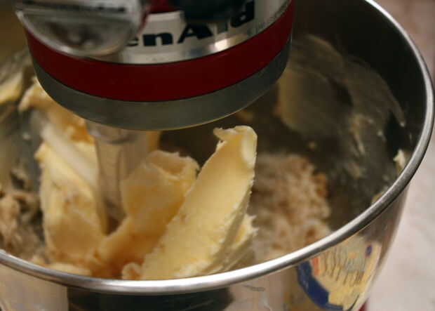 Precalentar el horno a 350° y rellenar 2 moldes de cupcake con los trazadores de líneas de la Magdalena (si estás haciendo el lote completo necesitarás más pero usted puede ocuparse de que mientras que el primer lote está horneando). Mezclar los ingredientes secos en un bol grande y reservar. En un recipiente aparte, una libra de mantequilla y crema con las 2 tazas de azúcar hasta ligero y mullido. Añadir los cuatro huevos uno uno, mezclando bien después de cada adición. Ahora alternativamente agregue la mezcla de harina con la crema agria y leche comenzando y terminando con la mezcla de harina. ¡ Felicidades! Se hace su masa.