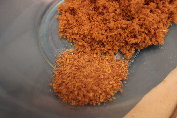 En un gran Bol, combine el aceite de coco, azúcar de mascabado, leche, semillas de lino de tierra y vainilla hasta que se incorporen bien. Esto puede hacerse en una batidora, con una batidora de mano, en un procesador de alimentos, o simplemente a mano con una cuchara grande o un tenedor. Proceso hasta que esté suave.