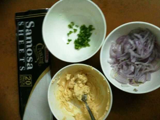 Tiras de samosa (podría utilizar el rollito de primavera las hojas y corte en 3)