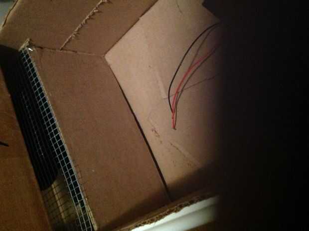 entonces puso una caja más pequeña en la parte superior con grifos de corte y la cinta debe terminar donde el alambre de pollo termina y pone una ficha del tablero de tarjeta para bloque de viviendas vacío