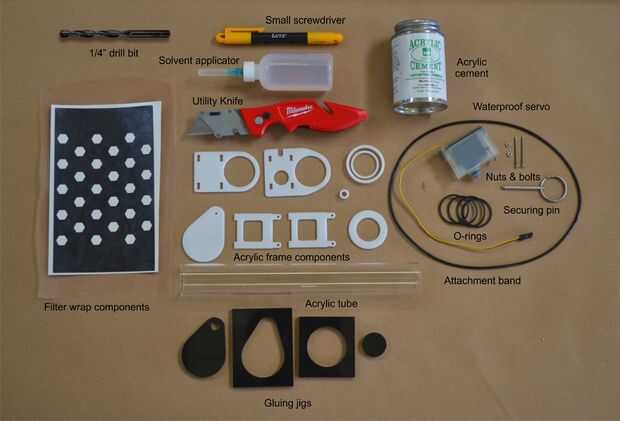 1. archivo: Tow_Laser de plancton OpenROV piezas cuarto pulgadas acrylic.eps (use este archivo para cortar el 1/4" piezas)