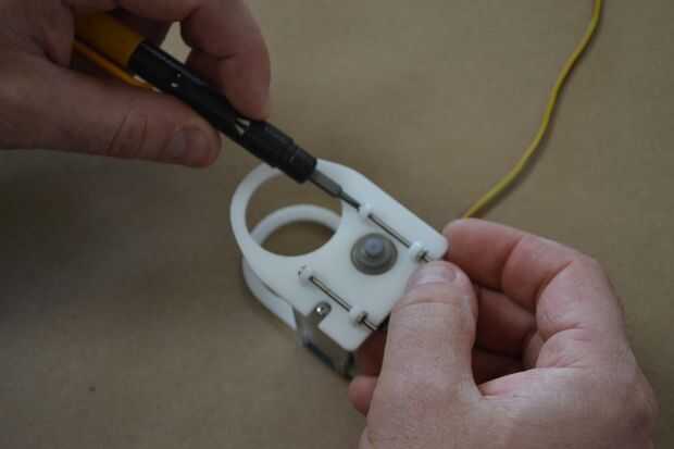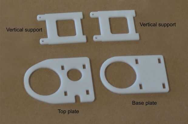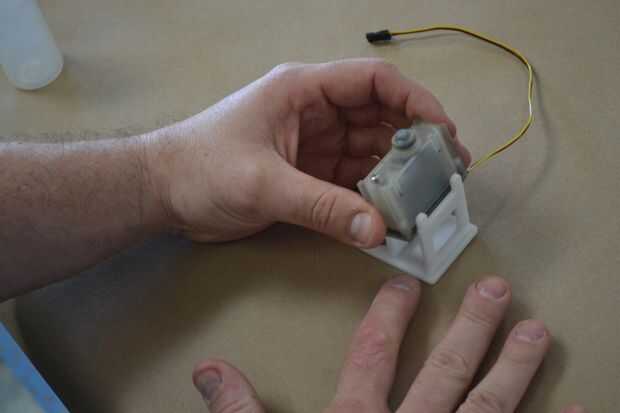 Ahora es necesario montar el chasis del servo. Esto asegurará el servo y este conjunto se deslice sobre el tubo de acrílico de la colección. El chasis permite el servo a eliminarse fácilmente si es necesario. Aquí es cómo construir el chasis: