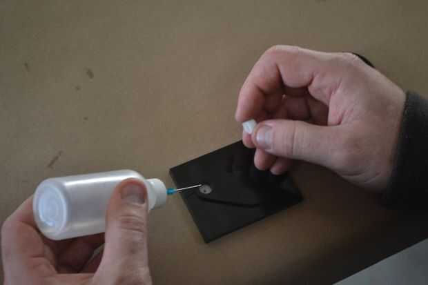 3. Coloque una pequeña cantidad de disolvente en el agujero y en la arandela de la spline.