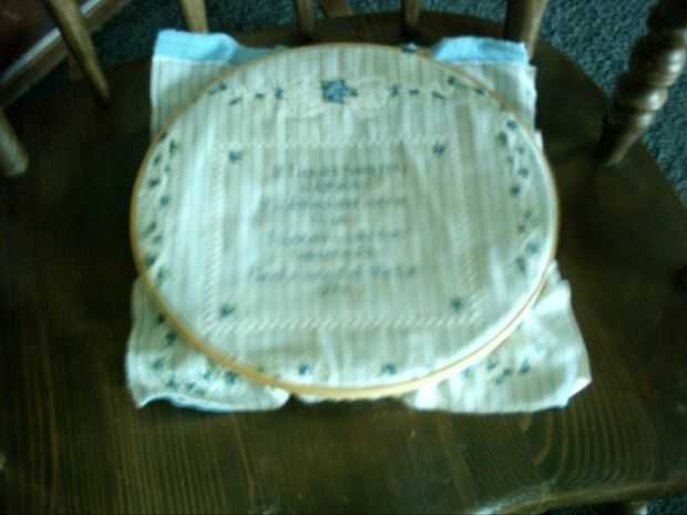 este tejido fue hecho para mi marido en la memoria de su madre quien falleció en octubre 16,2010. Ella amaba a rosas y trabajando en su patio. Comencé a las plazas embordiary y tenía a todos a hacerla esta colcha para un regalo de Navidad pero puesto