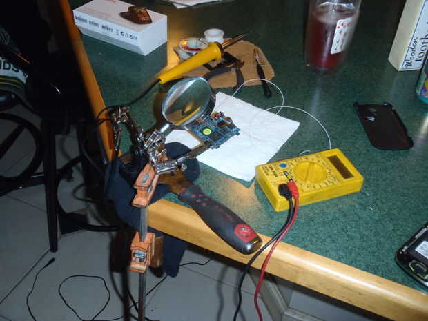 Está bien... Ahora que tu corazón es de carreras... Verifique los cables de soldadura no se toquen otros conductores... Esto es simple... Sólo coge una maquinilla de afeitar y correr entre sus puntas soldadas y el caldo de los... Si él va sin ningún problema se establece. Si no... Preparar bien para estar en un buen rato... (Tuve que volver a soldar la izquierda una tres veces...)