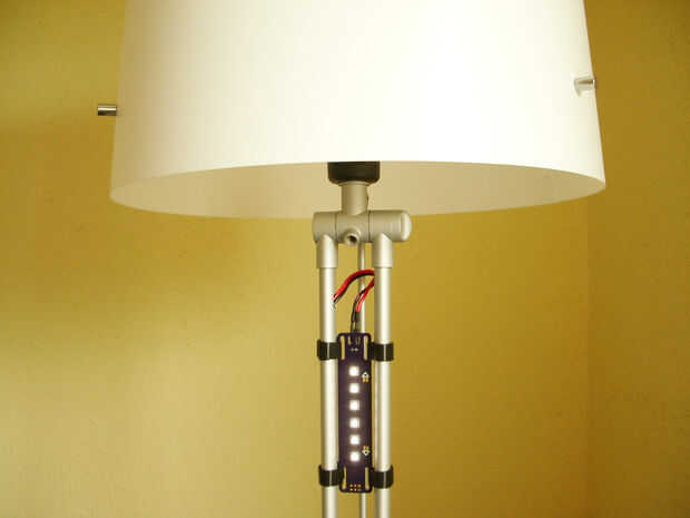 Después de cambiar todas las lámparas a LED bombillas de luz, yo estaba molesto por el hecho de que la mayoría de estas bombillas emite predominante la luz en el hemisferio delantero. Sólo muy poca luz, es en la dirección opuesta. Hasta cierto punto esto es mejorado por la pantalla de la lámpara actúa como un difusor, pero está todavía lejos de ser ideal. Para lograr una luz decente nivel de lectura, usted tiene que utilizar una fuente de luz muy fuerte. Sin embargo, la mayoría de esa luz entra en la habitación en vez de hacia abajo en su libro, creando una atmósfera cómoda de menos. Tuve que solucionar este problema.