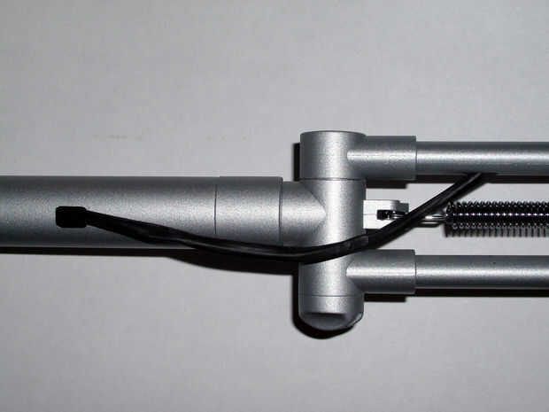 El cable de red funciona derecho a través del tubo de centro de la lámpara y luego a través de una de las barras de conexión de la articulación a la parte superior. Los cables de DC de 24V adicional va una ruta similar.
