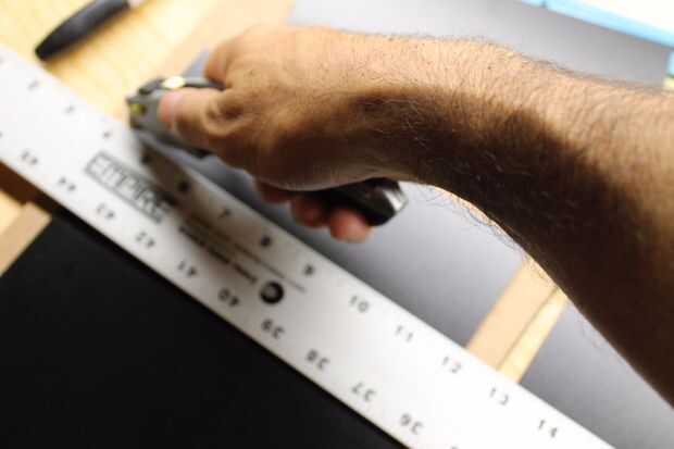 Corte de este material es el arte y puede ser razonable o profundamente frustrante. Comience con un corte superficial y hacer varias pasadas a través del mismo corte. Cortes rectos con una regla están super fáciles y ni siquiera tiene que hacerse todo lo largo; como el vidrio, puede cortar profundo a medio camino y lo quite. Para curvas, esperar un corte áspero que terminaras de lijado.