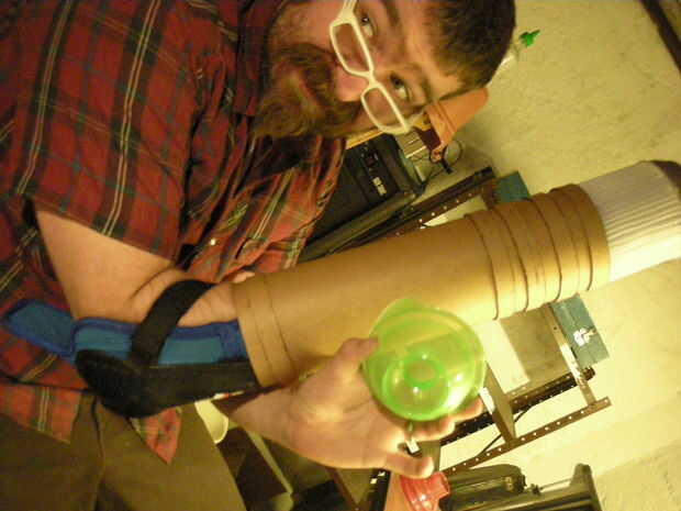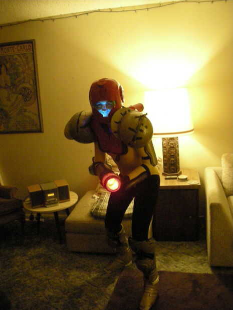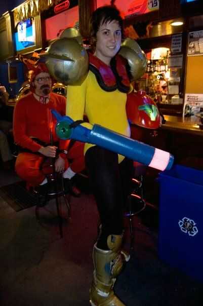 por lo que mi mamá me envió esta cosa mat gel-llenada que fue enviada alrededor de este tubo de cartón realmente agradable, robusto. Después de admirar la estera, inmediatamente puse el tubo en mi brazo y comenzaron a disparar a mi compañero de cuarto con mi cañón de brazo nuevo. Esto me hizo pensar en jugadores famosos del brazo cañón a lo largo de la historia, que me puso a meditar Metroid. Recordé que mi amigo Joni había estado meditando acerca de querer ser una especie de súper heroína para Halloween este año. Me golpeó. "Santa fuma!" Pensé, "que Samus Aran es muy super-heroinic! ¿Me pregunto si podríamos construir un traje entero alrededor de un cañón de brazo de tubo de envío"?