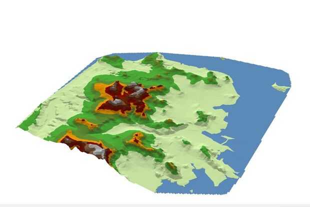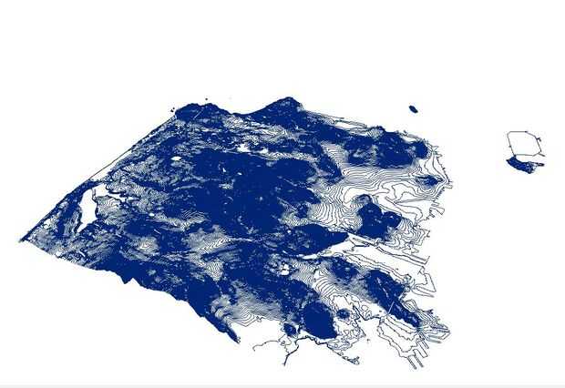Mi siguiente paso fue crear la topografía de San Francisco. He descargado una serie de archivos DEM de 7,5 minutos desde el sitio de la USGS. Traje estos archivos en el software de ESRI ArcScene para crear una lata. Luego exageró la superficie topográfica por cuatro veces para el efecto. Finalmente, había exportado la geometría como archivo .wrl.