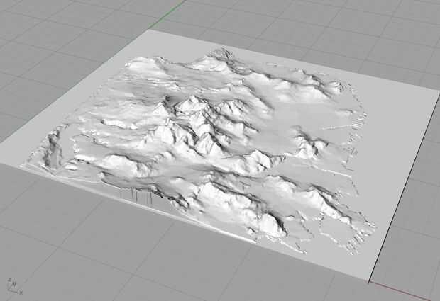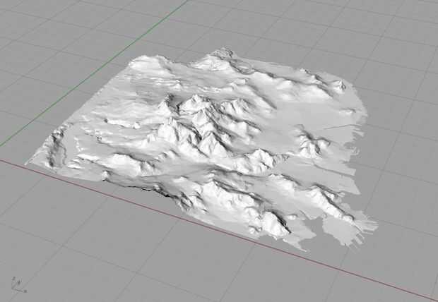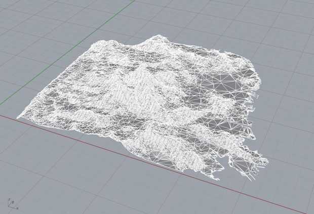 Había importado el archivo .wrl en Rhino. Primera orden de negocio fue cambiar el tamaño de la geometría de la malla a mi impresión dimensiones. Primero crea un shell de malla gruesa para imprimir, pero se dio cuenta de que sería imposible pulir claro. Por lo tanto, utilicé la herramienta cubra para crear una superficie lisa y limpia topográfica con una base plana.