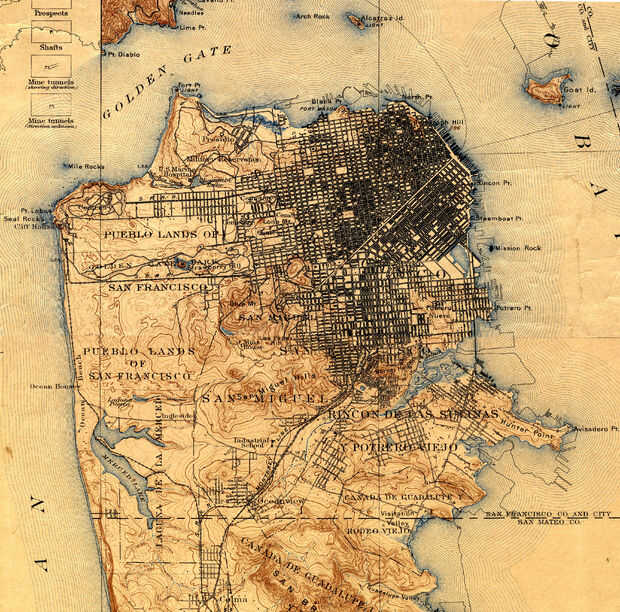 Para hacer los mapas de pasado, presente y futuro de San Francisco, he usado software ESRI ArcMap. El "Pasado" mapas histórico Obtenido de la línea colección de David Rumsey. Esto es un tesoro de mapas histórico increíbles. La parte más difícil fue decidir cuáles utilizar. Elegí la encuesta costera de Estados Unidos de 1859, el servicio geológico de Estados Unidos de 1899 y 1938 compuesto fotografías aéreas. El siguiente paso fue georeferenciada estos mapas como imágenes en ArcGIS.