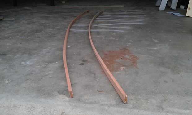 De la borda compré algunos madera 20x30mm. Comprobar cuidadosamente cada pieza para asegurarse de que no había nudos o grano feo. Yo había empapado algunas toallas viejas con agua y envuelve la madera en ellos y dejó en el calor del sol. Luego usé un secador de pelo para hacer las curvas. Fijarlos al barco utilizando cola y tornillos. El sistema funcionado bien y el borda no rompe como pensé que lo harían.