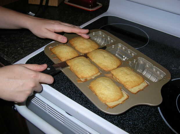Consejo: te recomiendo que pongas una hoja de papel de cera sobre la tabla para cortar antes de invertir. La razón de esto es que el fondo de los coches (que sólo cortó al ras con el pan) son muy pegajoso y después ha enfriado, puede dejar partes de sí mismos detrás cuando les mueves el tablero de corte.