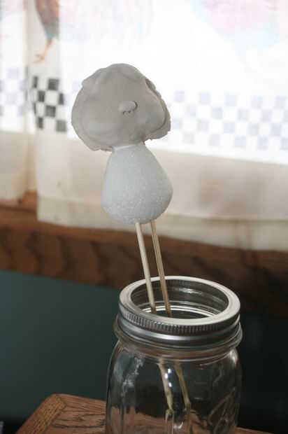 Añadir un poco de pegamento en la plana y luego conecte la cabeza, insertando el palillo de dientes en la parte del cuerpo-foto cuatro.