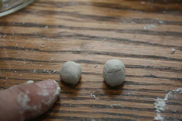 3 rodillo dos bolas pequeñas que serán las orejas.