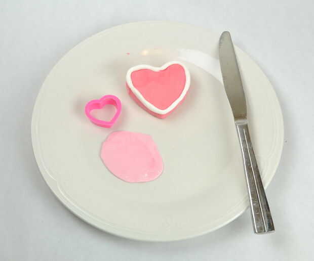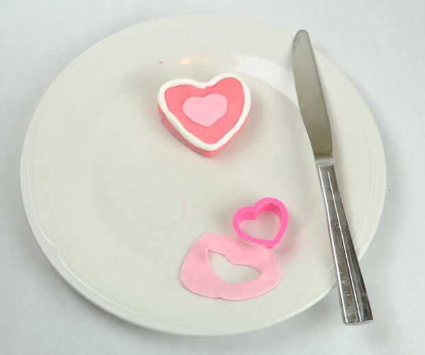 ¡ Diviértase decorar! Si sabes lo que quieres hacer, estirar trozos más grandes de fondant y cortar un montón de corazones a la vez. Estaba que lo componen cuando fui así que seguí cortando un corazón a la vez.