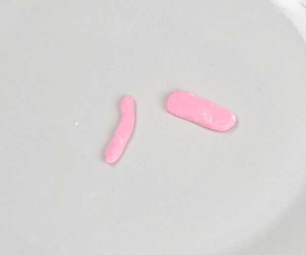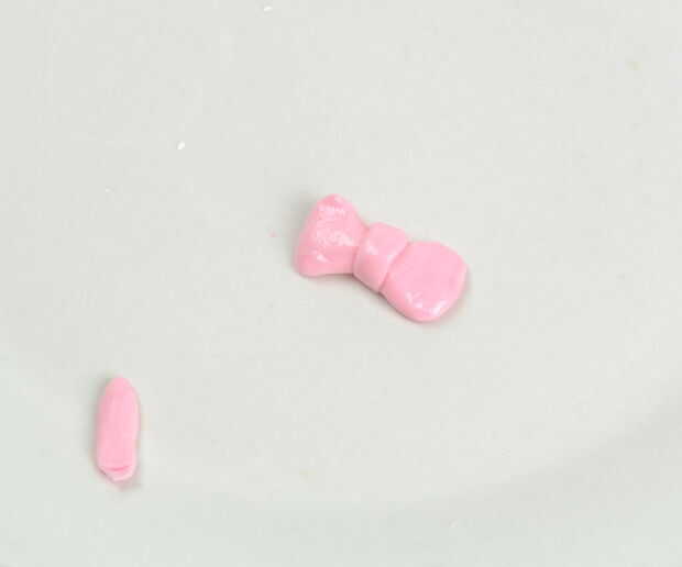Foto 5 y 6: un óvalo de la forma y con otro trozo de fondant, crear un arco poco lindo.