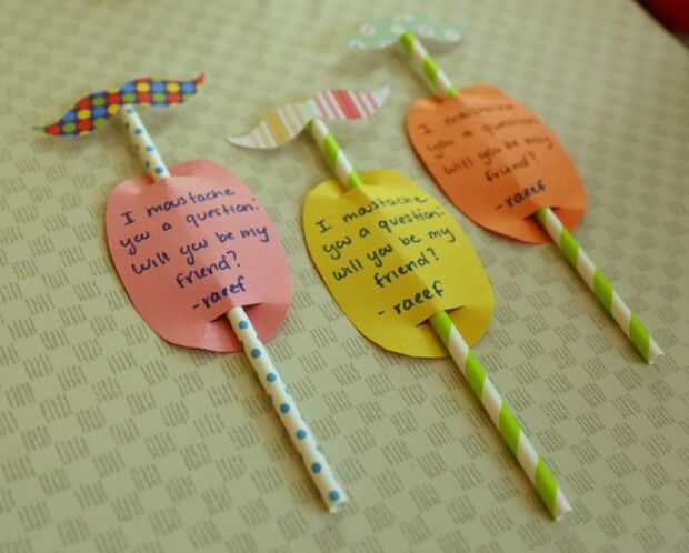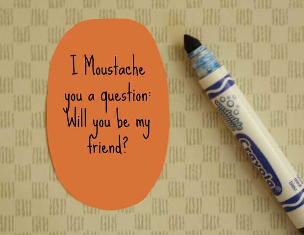 Lee, "bigote le una pregunta: va a ser mi San Valentín?" o cambiar la última parte con "va a ser mi amigo?" que puede ser más apropiado para los niños más pequeños.