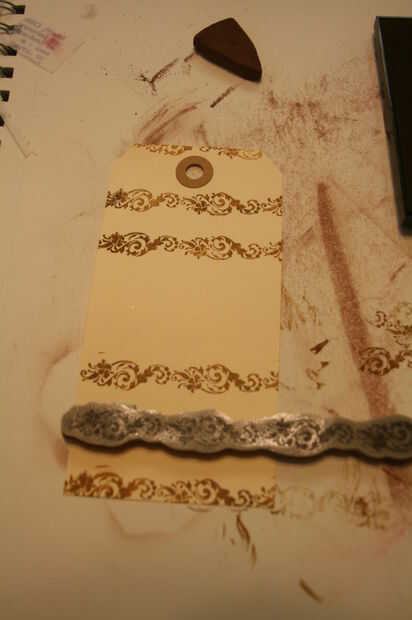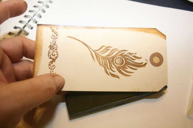 1-sello sus etiquetas utilizando varias imágenes 2 - ejecutar todos los bordes de la etiqueta a través de la ayuda de almohadilla de tinta para darle un aspecto envejecido. Ver foto 4, 5 y 6 para la referencia.