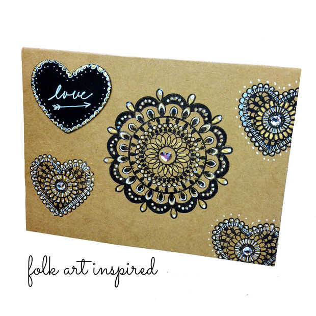 Dibujar y escribir en el corazón de pizarra, se adhieren a la esquina superior izquierda de la tarjeta.