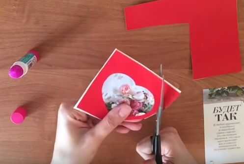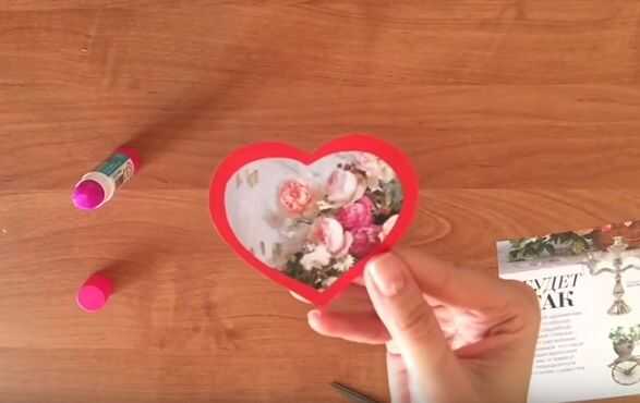 San Valentín fácil hecha de páginas de revistas, cartulina y papel (3 / 8 paso)
