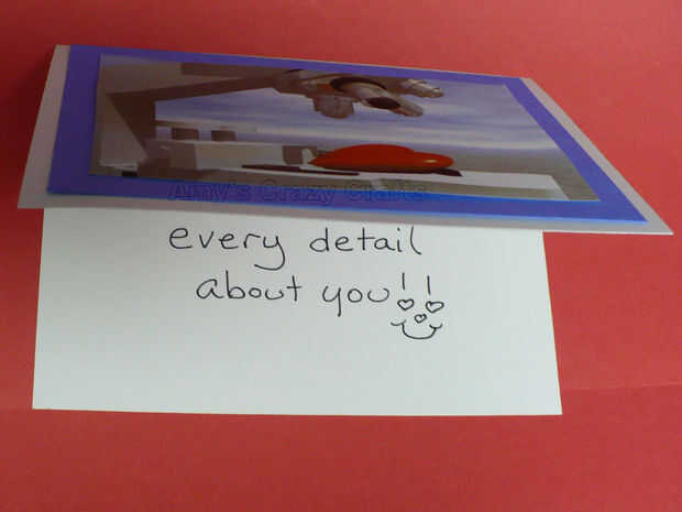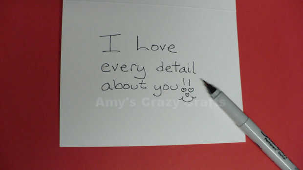 Usted podría también imprimir esto en la tarjeta si desea que se vea más bonito. Yo quería que fuese personal por lo que la mano le escribió.
