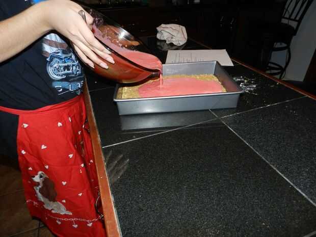 Entonces verter la mezcla final sobre la corteza de galleta como en la imagen.