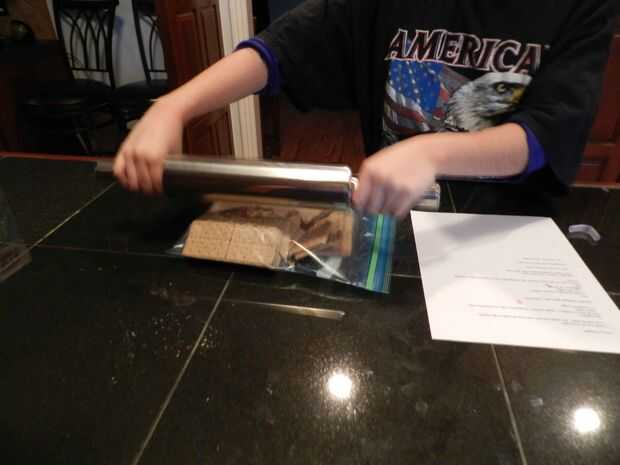a continuación dos de los tres paquetes de galletas y ponerlas en la bolsa de ziplock. Aplastarlas con un rodillo. También puede utilizar sus manos en su lugar si usted no tiene un perno de balanceo. Mide dos tazas.