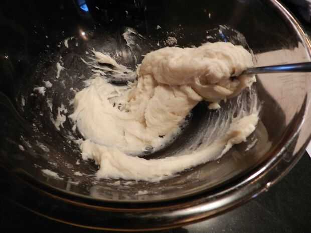 En el otro recipiente se mezcla el paquete grande de queso crema, azúcar regular y 1 cucharadita de vainilla. Para este paso sólo mezclé a mano en lugar de utilizar la batidora. Para principiantes se desea utilizar la batidora. Si no tienes uno que puede revolver con la mano, pero usted tendrá que asegurarse de mezclar muy bien. Revolviendo a mano tomará algo de tiempo y esfuerzo. Mira las fotos si necesitas más orientación.
