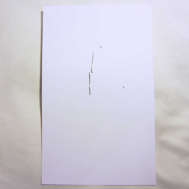 1. Mantenga el interior de la hoja hasta la luz y marca en la parte posterior un punto en el centro de la cabeza y un punto en el lado del robot desde el corazón. Utilizaremos estas tarde como guías.