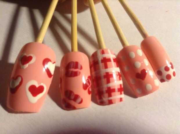 En primer lugar, dar las uñas una buena capa del pulimento rosa luz. Luego siga los siguientes 5 pasos, o mezclar y combinar los pasos para hacer un hermoso, divertido y fácil de San Valentín Mani!!!