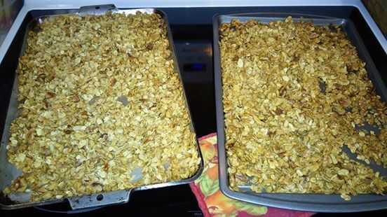 Me encanta la granola. No he podido encontrar uno que me encantaba, confeccionadas. Así que decidí hacer mi propio. Después de mucho experimentar y leer y probar otras recetas. Se me ocurrió éste. Tengo una familia grande y han hecho esta receta para