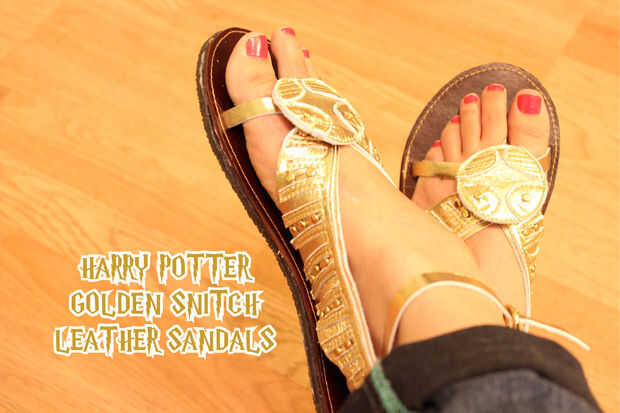 ¿Está buscando un nuevo par de zapatos? Era, así que decidí hacer un par de sandalias de cuero inspirada en la snitch dorada de Harry Potter (una de mis cosas favoritas!)