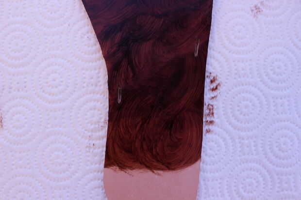 A continuación he añadido una mancha marrón a las plantas para darles un aspecto más agradable. Apliqué la mancha en la parte superior de la planta usando una brocha de espuma y aplicarlo en movimientos circulares. Después de terminar la parte entera superior de la capa I pulir usando una toalla de papel y deje que se seque. Aplica 3 capas para conseguir mi color deseado, permitiendo unos 15 minutos de tiempo antes de aplicar cada capa de secado.