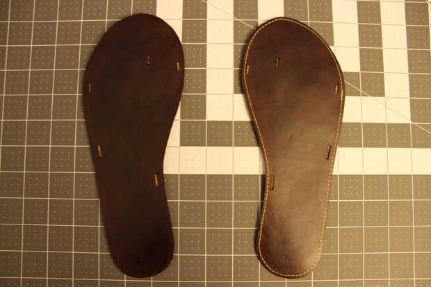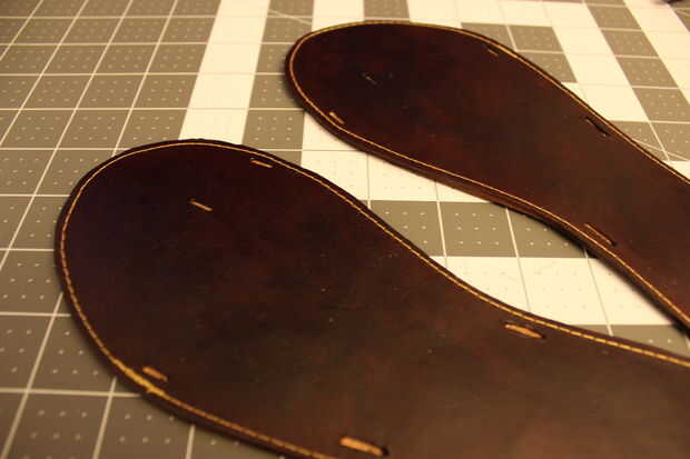Y para completar las partes superiores de cuero he añadido un topstitch alrededor del borde externo todo para darle un aspecto real de la sandalia.
