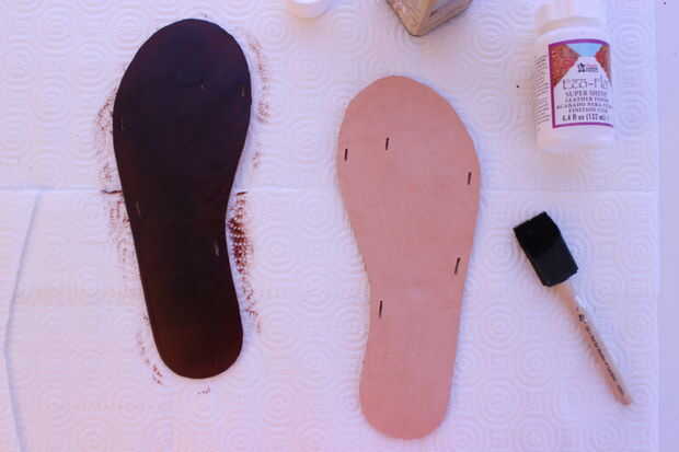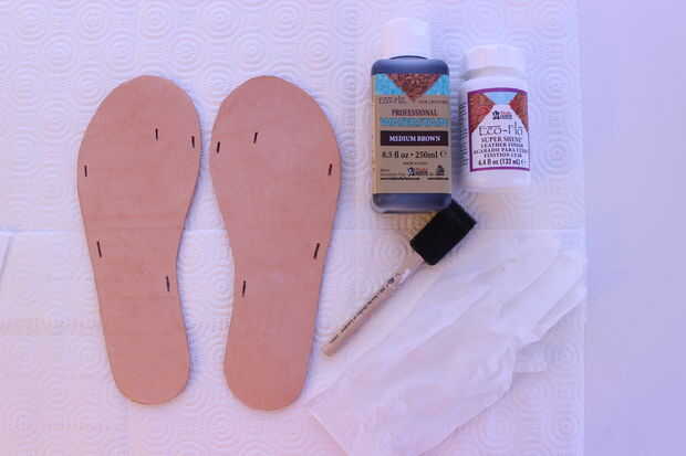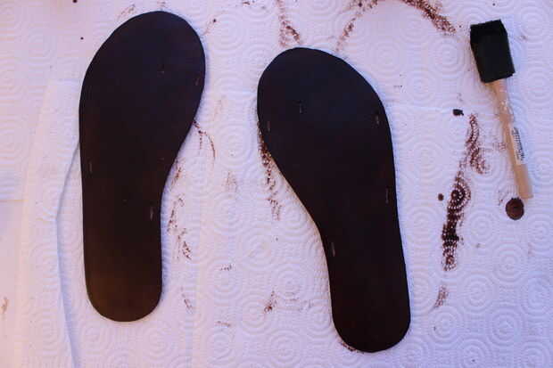 Para crear el cuero superior de la suela usé un pedazo grueso de cuero sin terminar.