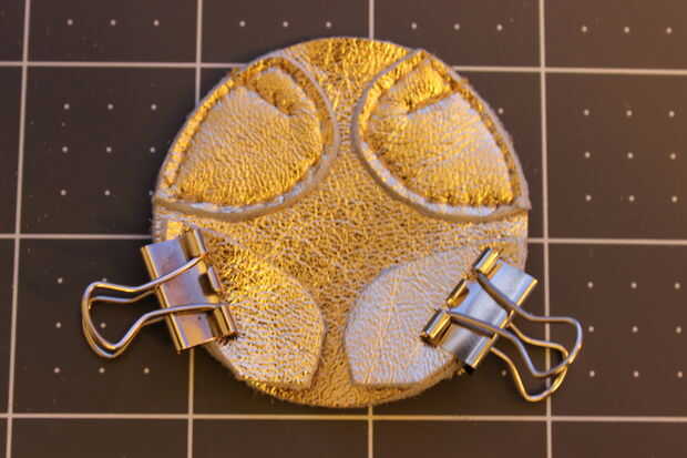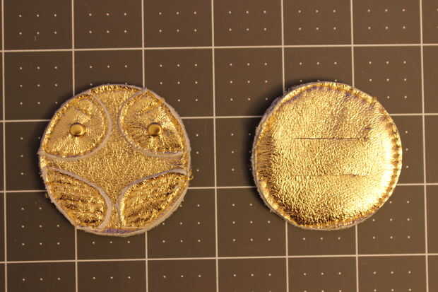 Para el soplón creé una base redonda y agrega detalles de apliques de cuero en la parte delantera para asemejarse a la snitch dorada.