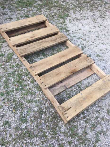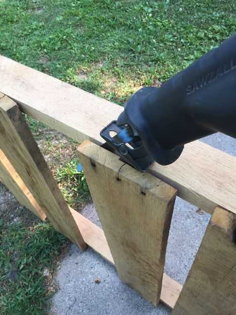 Primera cosa a hacer era cosechar la madera de palet. Yo siempre uso una sierra de sable para cortar las uñas. Creo que esta es la manera más rápida de conseguir madera de palet. Entonces tienes que usar un punzón para sacar las uñas y eres bueno para ir.