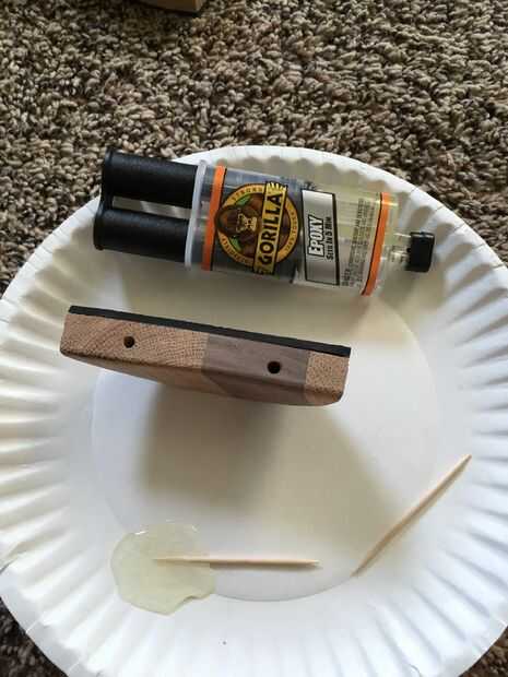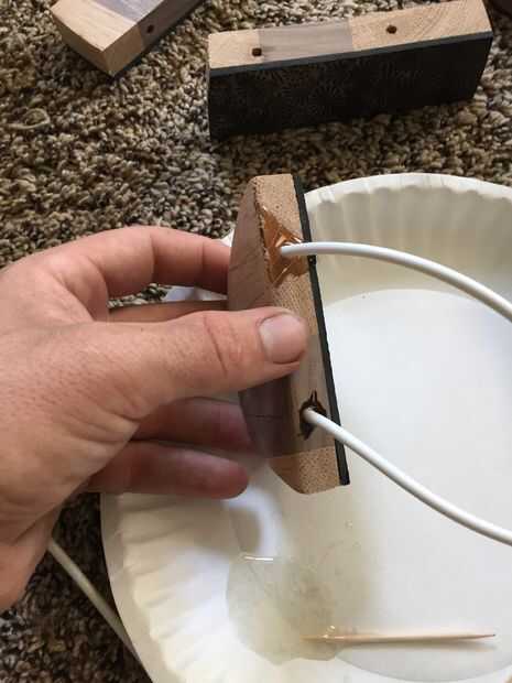 Luego perforé los orificios a través de los bloques que recorren la línea. En el dedo que no perforar a través de todo el camino. Entonces comenzó la línea de ropa y había llenado de los agujeros con epoxi. Cuando usted tiene que hacer puede cadena todo y empezar a ver lo que parecerá su sandalia.