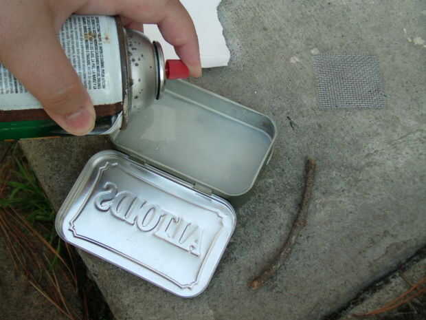 La lata debe ser protegido para no oxidarse. Roció el interior de la parte inferior de la lata con un material llamado RustOleum. Usted querrá hacer este exterior ya que los gases son fuertes. Si no tienes nada como RustOleum, también podrían tratar de revestimiento de la parte inferior con envoltura de plástico.