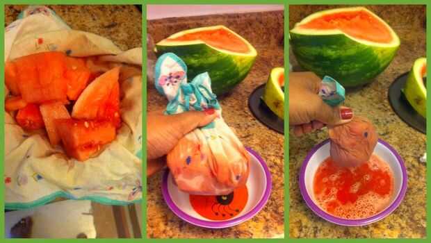 Ingredientes de perifollo1 lb de 7-8 sandía sin semillas (a la mitad), enfriadao 4 pequeñas sandías sin semilla (por ejemplo, Dulcinea)1/2 taza aceite de oliva virgen extra3 limones, jugo1 1/2 cucharadita de sal3/4 de cucharadita de pimientahojas de