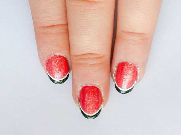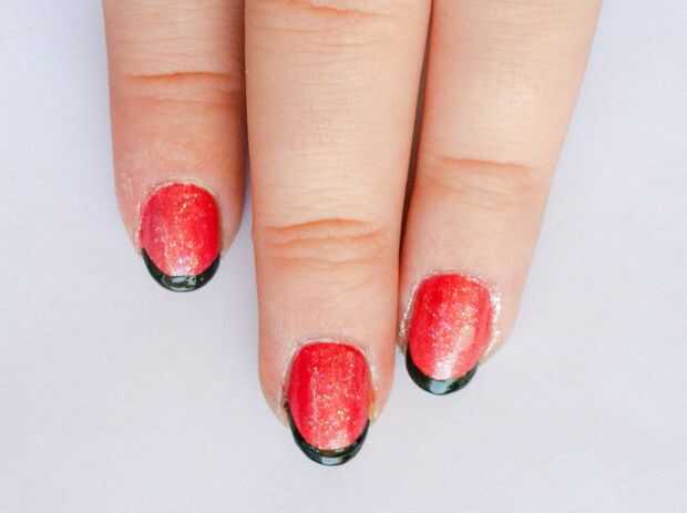 3. usando esmalte verde oscuro, la línea la punta de la uña.