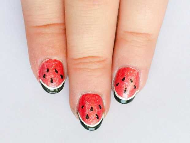 inspirado por mi moda colorida fruta impresiones creé una forma fácil de copiar el diseño de arte de uñas sandía. Esta mani nace con una capa de un esmalte de uñas de KOH Cosmetics rosa caliente y verde vibrante. -Ver más en: http://www.pinkchocolate