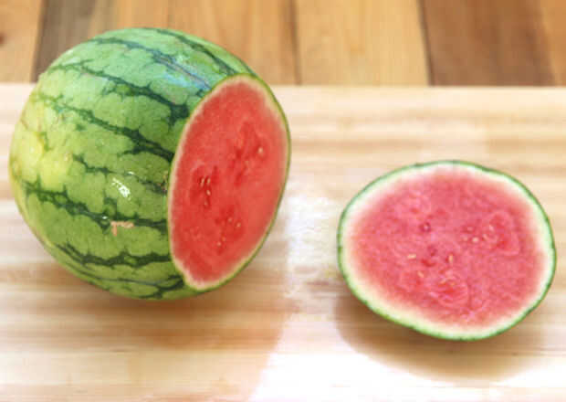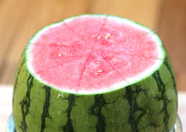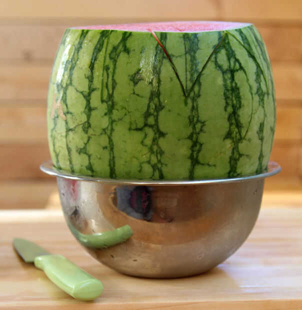 Comenzar con una sandía, utilizamos bebé unos. Éstos tienen corteza muy delgada, y todavía sostenían bastante bien.