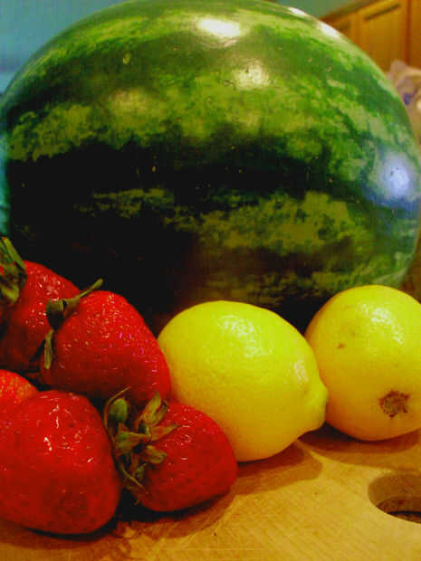 primer batido de mi wow de cerebro? () (Que les espero guste ^-^)Paso 1: frutas la mitad del plátano, sandía, fresas (yo pongo 9), jugo de limón (1 y 1/2) y una cuchara de mermelada de fresaPaso 2: Mezclar *. * añadir unos cubitos de hieloAquí le dam